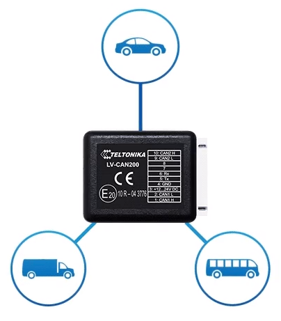 Пристрій відомого литовського виробника Teltonika LV-CAN200 є додатковим датчиком, що підключається до електронного бортового комп'ютера автомобіля. За широкий перелік даних, що збираються, його називають універсальним зчитувачем. Датчик характеризує висока завадостійкість. Просте в реалізації пристрій не вимагає великих витрат в процесі експлуатації. Щоб уникнути втрати сигналу, застосовується штатний CAN-порт.
